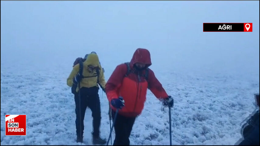 Yaz-kış dağcıların tırmandığı Türkiye’nin en yüksek doruğu, sis ve fırtına eşliğinde dağcıları ağırladı.