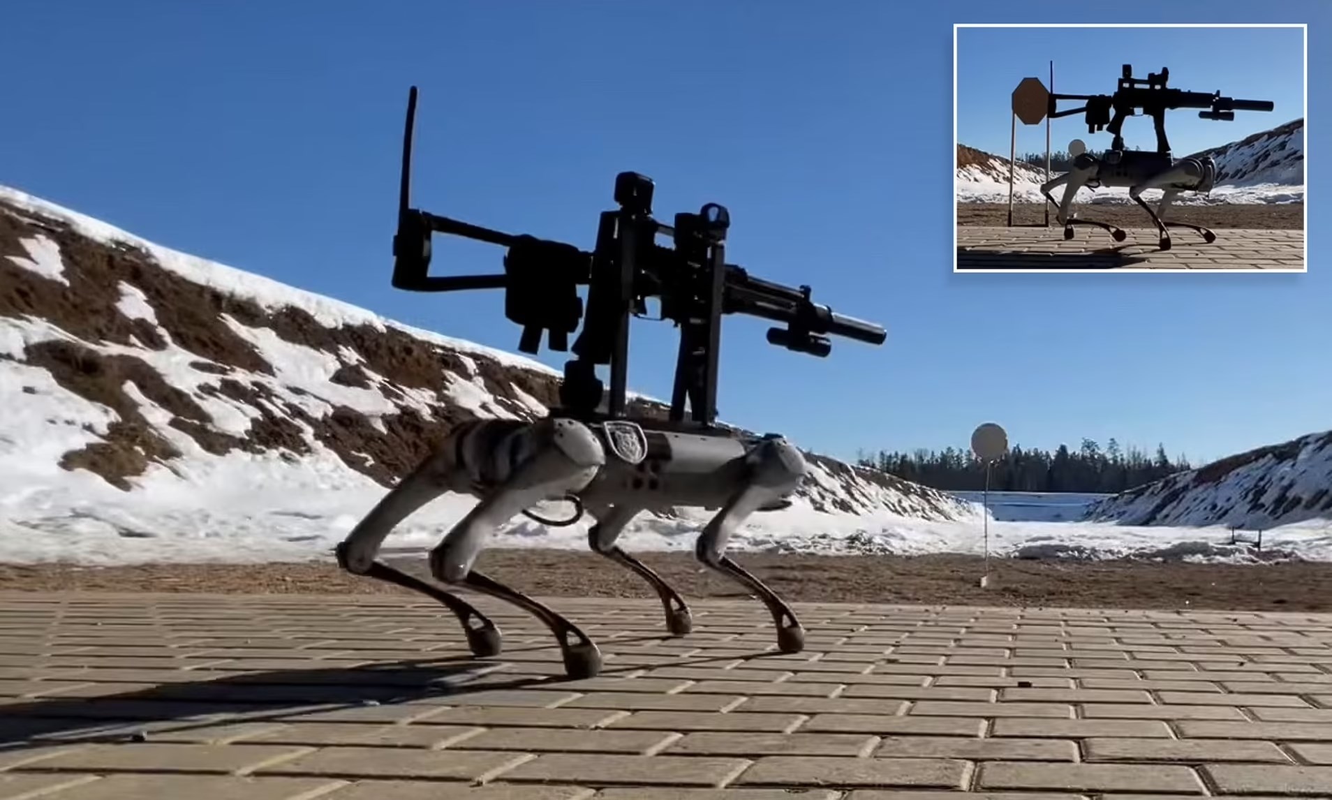 Ek olarak silah, optoelektronik görüş, şok emici parça ve otomatik yeniden yükleme sistemi ile donatıldı. Kurulumun hassasiyetini ve doğruluğunu değerlendirmek için robot köpeğe, 100 metre uzakta duran insan boyutundaki bir hedefe 10 mermilik atışlar yapması emredildi. Sonuçlar etkileyiciydi.