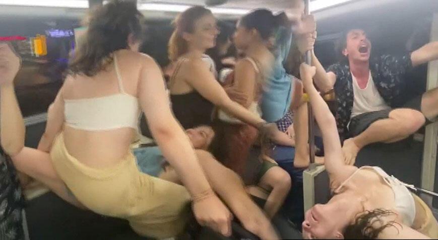 Gruptakiler otobüste direk dansı da yaptı. Otobüse binen bazı yolcular da eğlenceye katıldı. Koltukların üzerine çıkan, direkleri kullanarak da dans eden gruptakiler kameralara yansıdı.