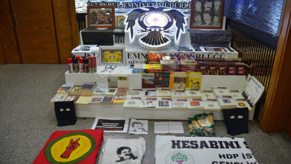 Binanın deposuna yapılan operasyonda, örgüt elebaşı Abdullah Öcalan’ın afiş ve posterlerinin yanı sıra, korsan gösteri ve yürüyüşlerde kullanılabileceği değerlendirilen 8 eldiven, 10 sprey, 2 yüz maskesi, 3 yelek, 85 meşale, 10 havai fişek rampası ve 67 torpil ele geçirildi.