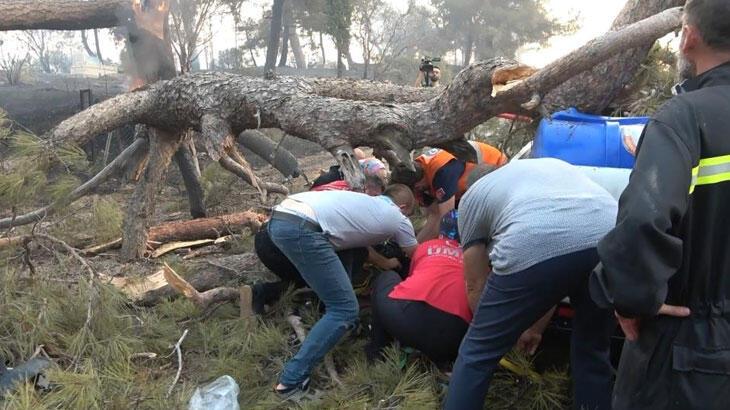 Çanakkale’de çıkan orman yangını birçok yerleşim alanını kullanılamaz hale gelirken, yanan ağacı söndürmek isterken bir görevli de ağacın altında kaldı