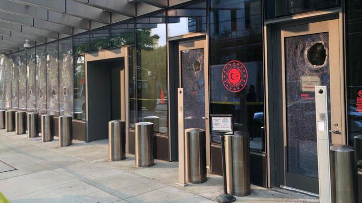 Türkevi’nin giriş katındaki pencerelerde saldırı sonucu büyük delikler açıldığı göze çarparken, New York polisi saldırganları araştırıyor. Sosyal medyada kırılan konsolosluk camlarını inceleyen polis ekiplerinin yer aldığı videolar paylaşıldı.